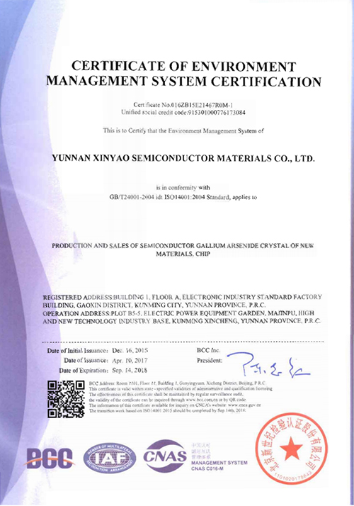 環(huán)境管理體系認(rèn)證證書(附件英文)